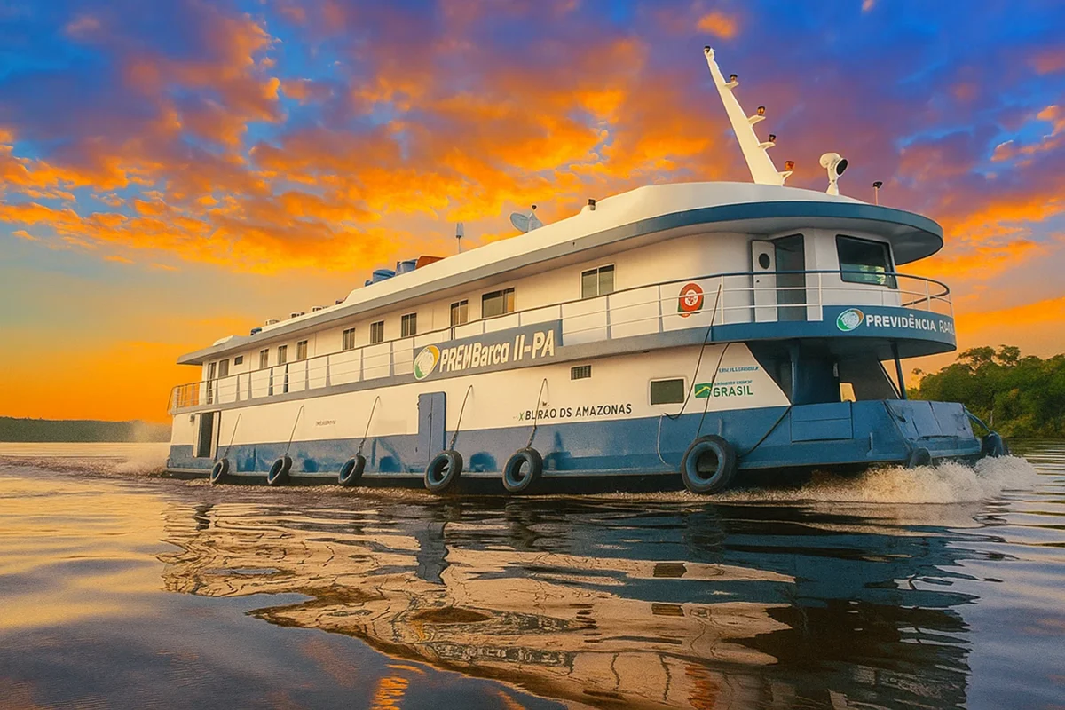 As unidades móveis flutuantes, que são como agências itinerantes, garantem que moradores de áreas de difícil acesso tenham acesso aos mesmos serviços oferecidos em uma agência física do INSS.