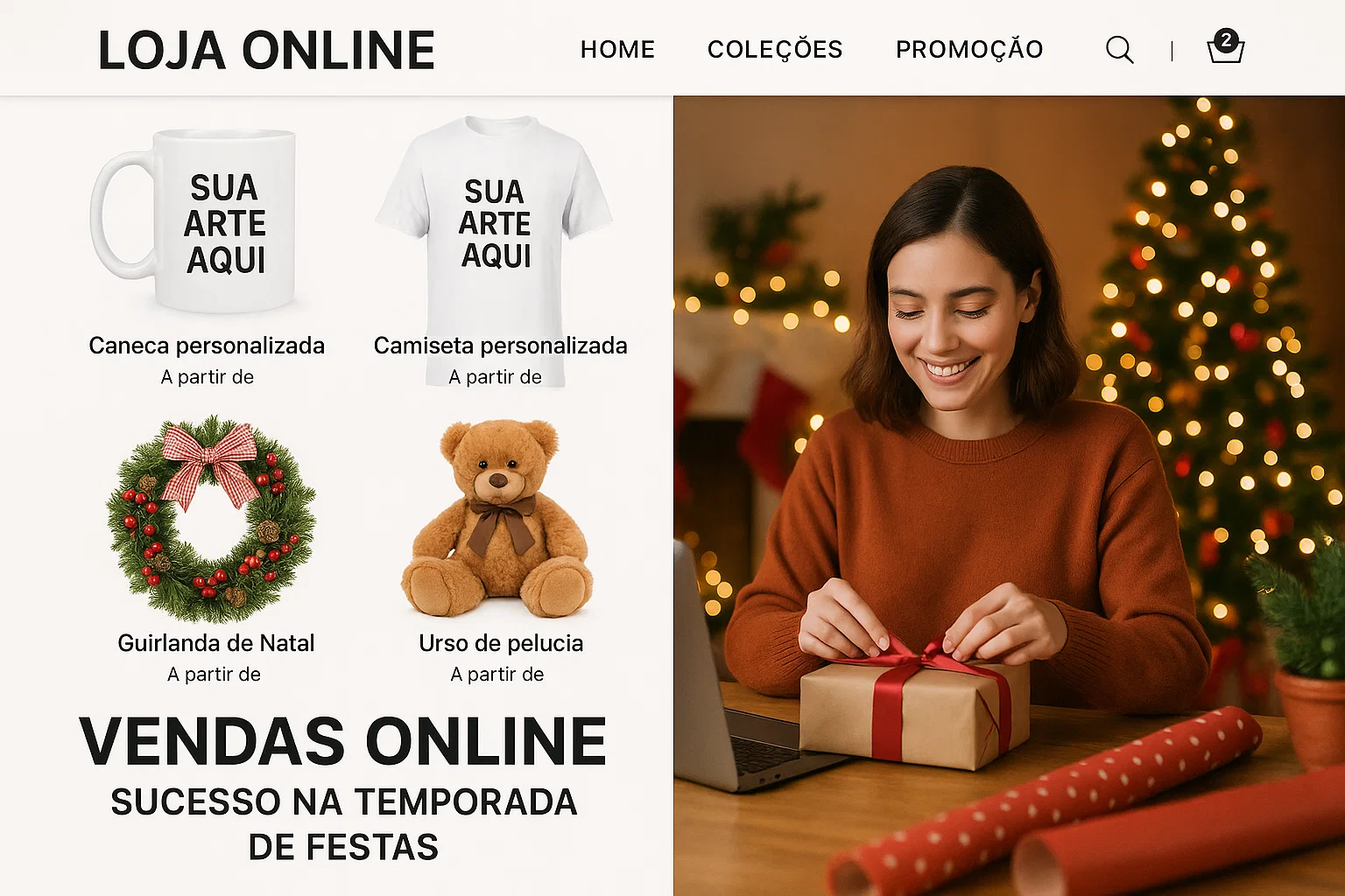 Presentes personalizados estão sempre em alta no Natal. Canecas, almofadas, camisetas e chaveiros com mensagens ou fotos especiais são itens muito procurados para presentear. Se você tem criatividade, pode se especializar em personalizar produtos e atrair compradores que buscam algo único. Plataformas como Etsy, Mercado Livre e Instagram são perfeitas para divulgar essas peças.