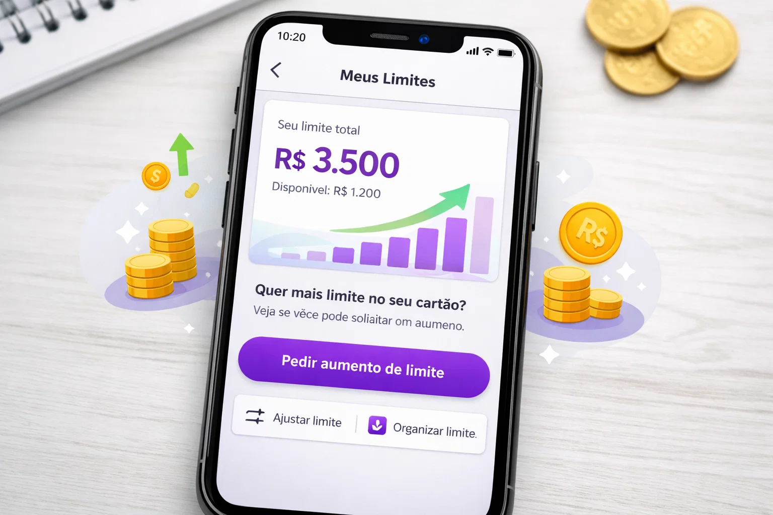 Aumentar o limite do cartão Nubank pode ser feito de várias formas: transformando o dinheiro guardado em Caixinhas em limite, solicitando diretamente pelo app, usando garantias com investimentos ou cumprindo missões dentro do aplicativo.