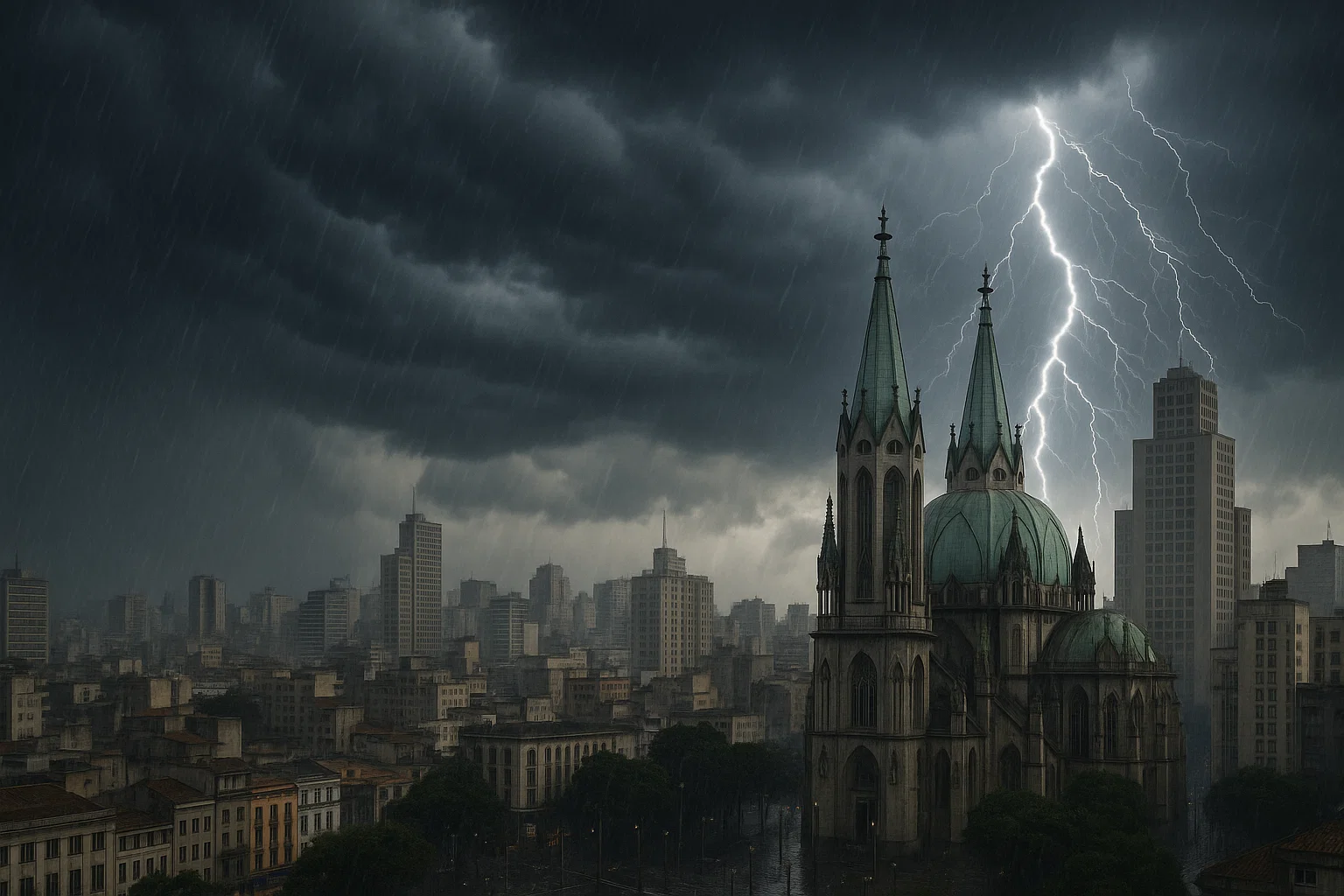 A presença de ventos quentes e úmidos vindos do Norte do Brasil também contribui para a formação de nuvens cumulonimbus, típicas de tempestades. A combinação desses fatores cria as condições perfeitas para chuvas intensas, raios e fortes rajadas de vento.