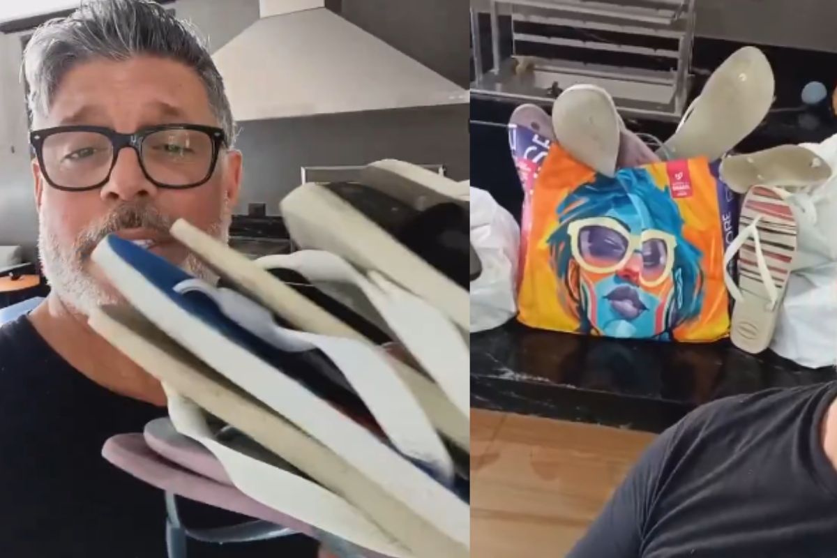 Alexandre Frota grava vídeo com Havaianas que recolheu e atitude choca