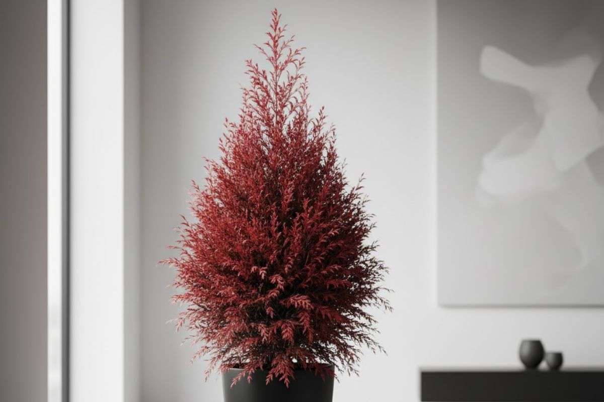 Em 2025, uma planta em especial assumiu o protagonismo: a tuia vermelha, que já aparece em floriculturas como a grande substituta do pinheiro decorativo.