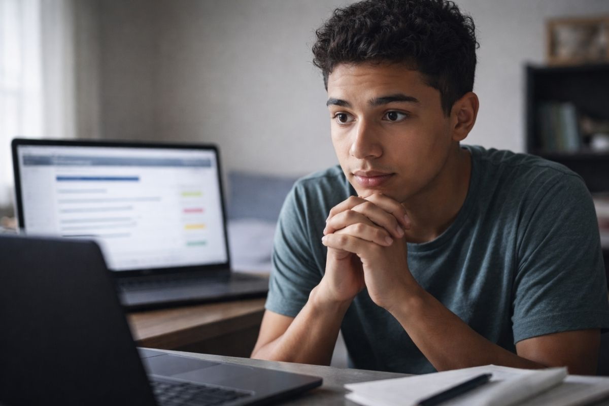 Um jovem esperando o resultado do Vestibulinho ETEC