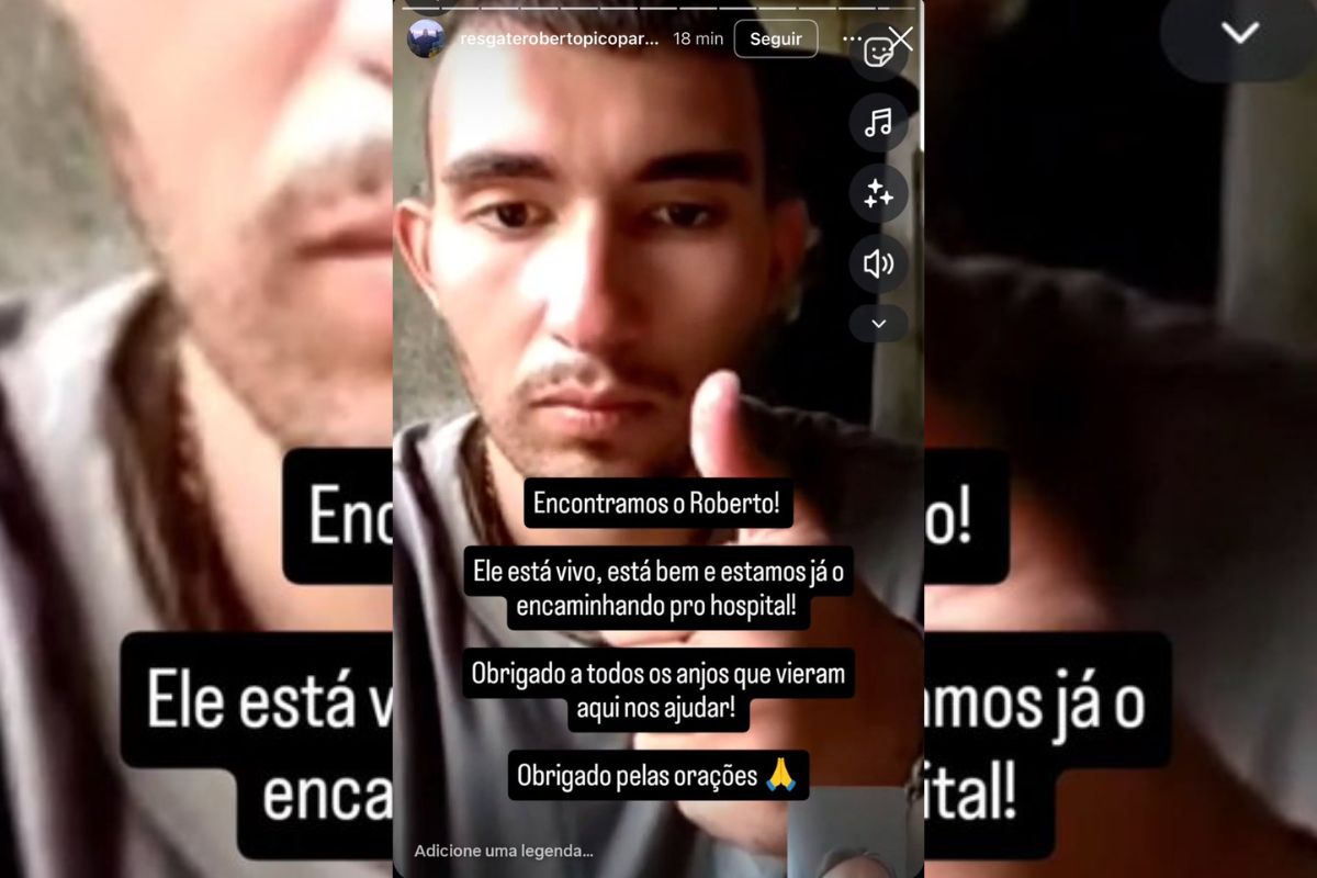 Segundo o Corpo de Bombeiros, Roberto foi localizado consciente após pedidos de socorro serem ouvidos pelas equipes. Ele percorreu mais de 20 quilômetros sozinho, em mata fechada e terreno de difícil acesso.