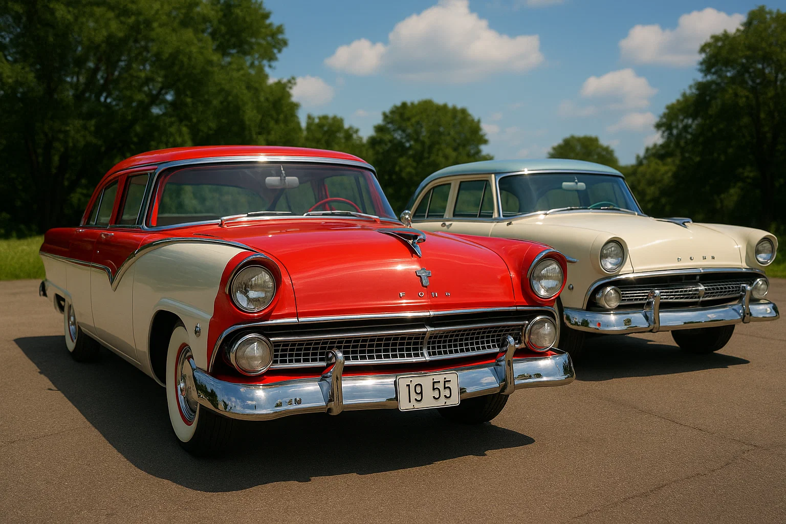 Os modelos Ford de 1955 continuaram a evoluir, com designs mais modernos e emocionantes. O modelo Fairlane foi introduzido como o topo de linha, com motor V8 de até 4,8 litros e novas opções de carroçaria.
