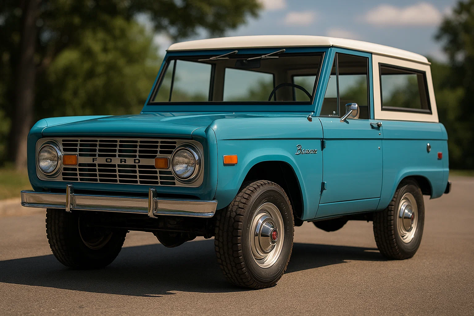 O Ford Bronco foi o primeiro SUV da marca, disponível como roadster, carrinha e SUV. Com motores de seis cilindros e V8, o Bronco se tornou uma escolha popular, embora tenha sido substituído por um modelo maior em 1977.