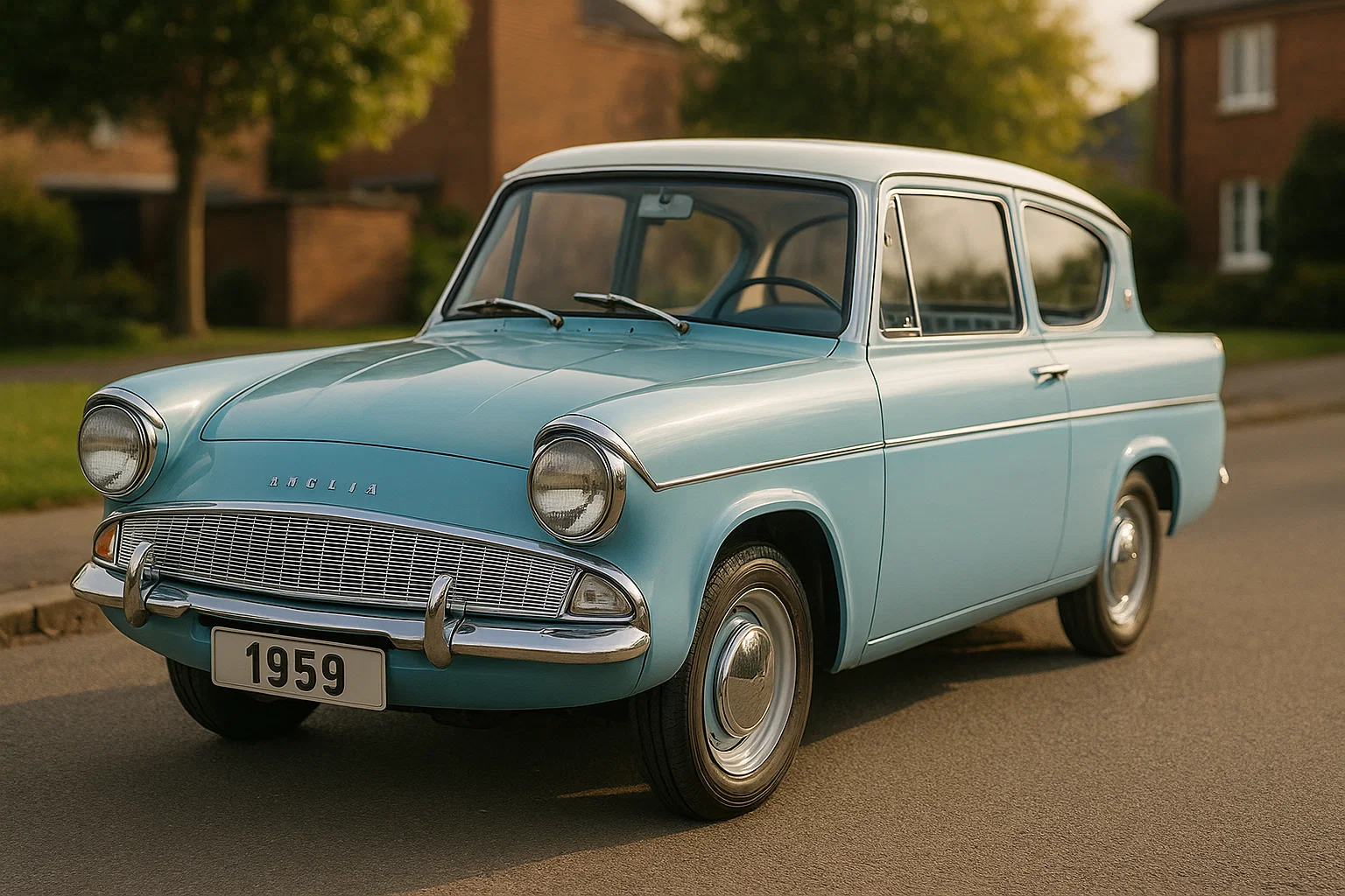 O Ford Anglia de 1959 foi inovador com sua janela traseira única e design futurista. Equipado com o motor Kent, o Anglia também lançou a base para motores mais potentes em futuros modelos, como o Lotus Twin Cam e o Cosworth BD.