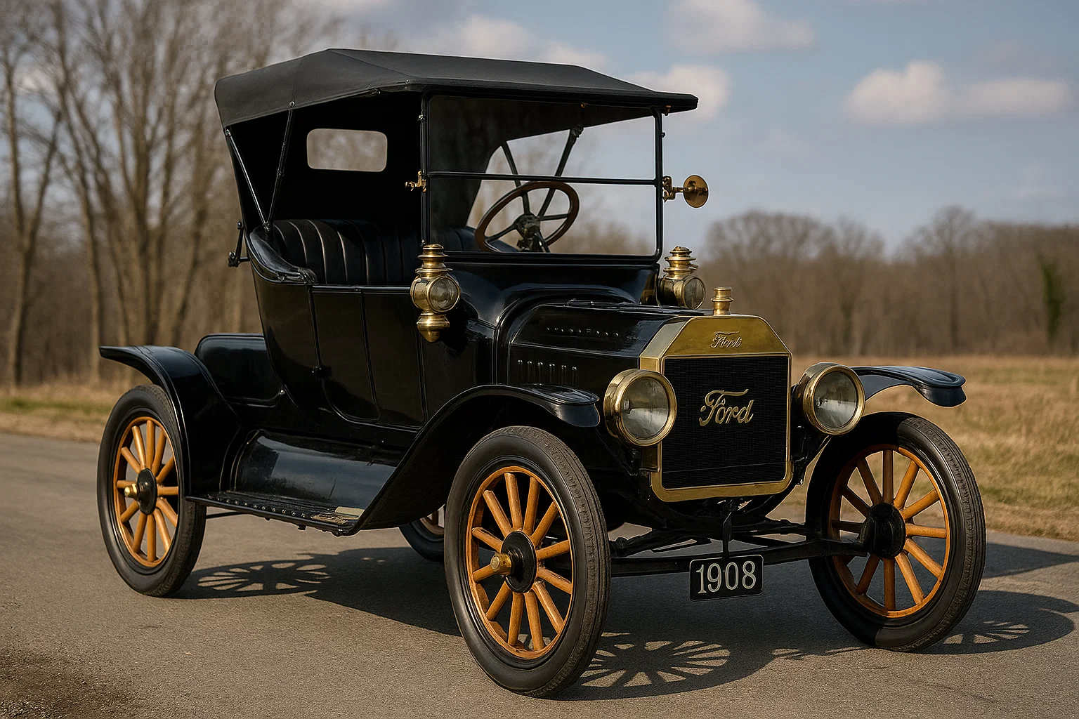 A rápida evolução tecnológica na indústria automotiva dos EUA garantiu que o Modelo T da Ford estivesse disponível de 1908 a 1927, muito mais tempo do que seus antecessores. A grande novidade do Modelo T foi a linha de montagem em movimento, o que permitiu a produção em massa de peças intermutáveis.